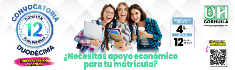 Desde el martes 17 de noviembre está habilitada la 8.ª. convocatoria para el programa «Donatón Plan Padrino» diseñado para apoyar con un porcentaje en el pago de la matrícula a estudiantes que presentan dificultad de tipo socioeconómico. Esta convocatoria aplica para estudiantes (antiguos/reintegros) y aspirantes.